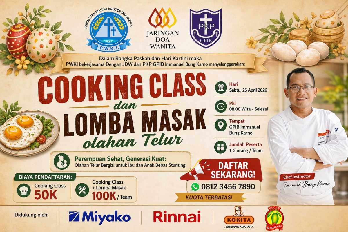 Warta Mataram – Mataram, 24 April 2026 – Dalam rangka memperkuat pencegahan stunting melalui edukasi keluarga, Persatuan Wanita Kristen Indonesia (PWKI) Provinsi Nusa Tenggara Barat (NTB) akan menggelar acara Cooking Class dan Lomba Masak Olahan Telur. Kegiatan ini berhasil menarik 150 peserta, melampaui target yang telah ditetapkan.