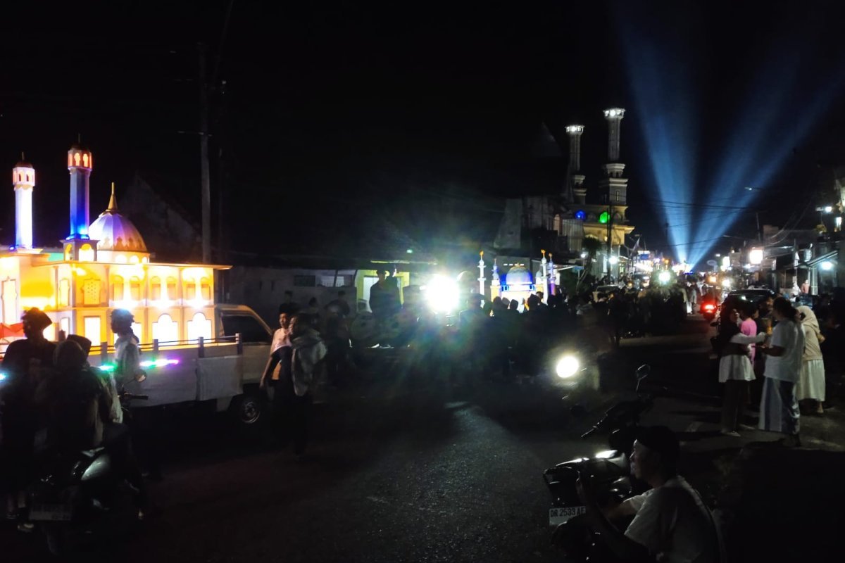 Takbir, tahmid, dan tahlil terus berkumandang, menciptakan suasana religius yang khidmat sekaligus meriah. Kreativitas para peserta terlihat dari desain miniatur masjid dengan kubah berwarna-warni, menara menjulang, serta pencahayaan lampu yang memperindah tampilan di malam hari.