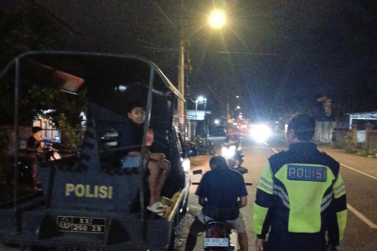 Petugas melakukan upaya humanis dengan mengingatkan para pemuda agar tidak melanjutkan aktivitas yang dapat mengganggu ketertiban umum dan membahayakan keselamatan pengguna jalan.